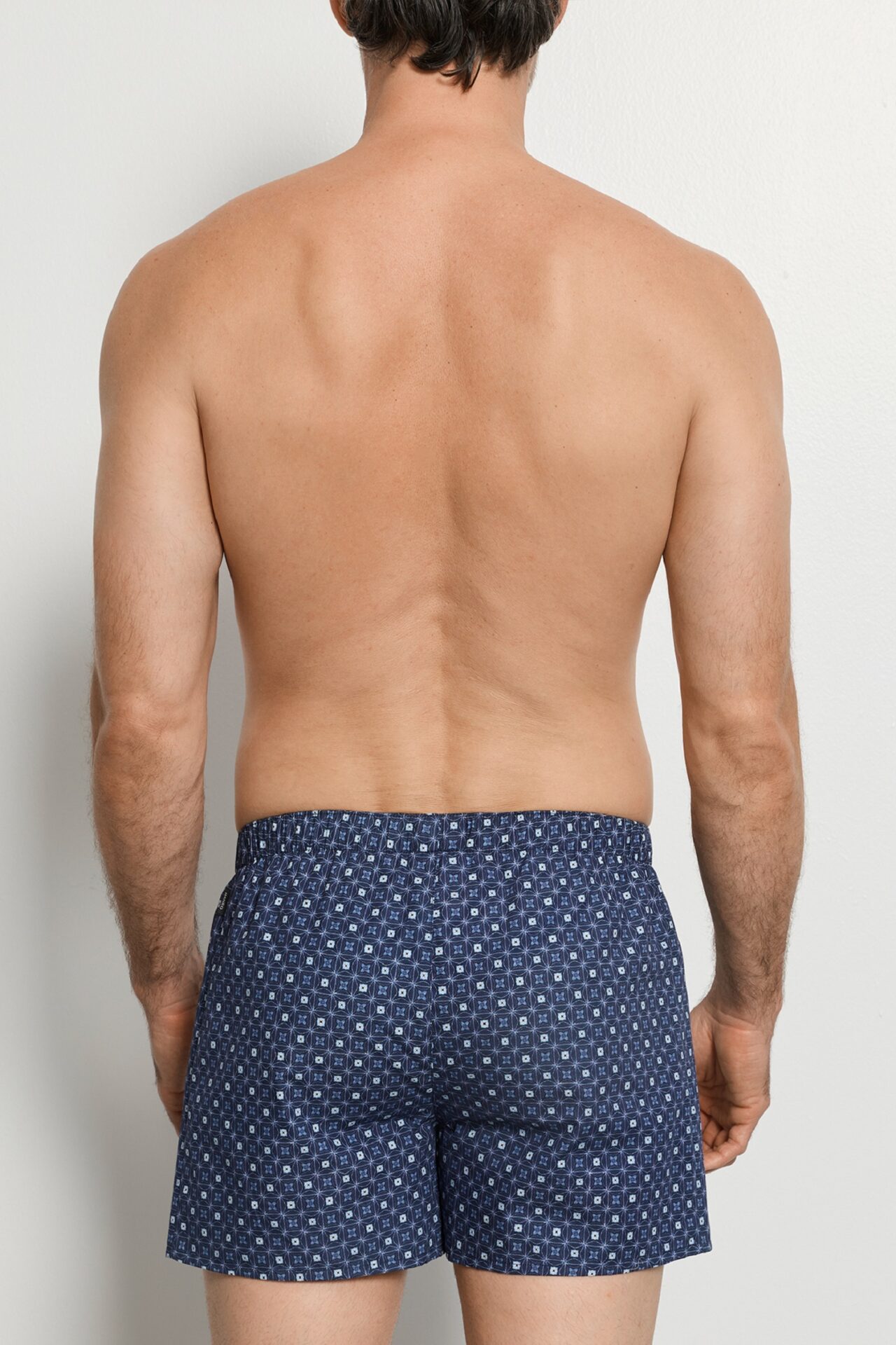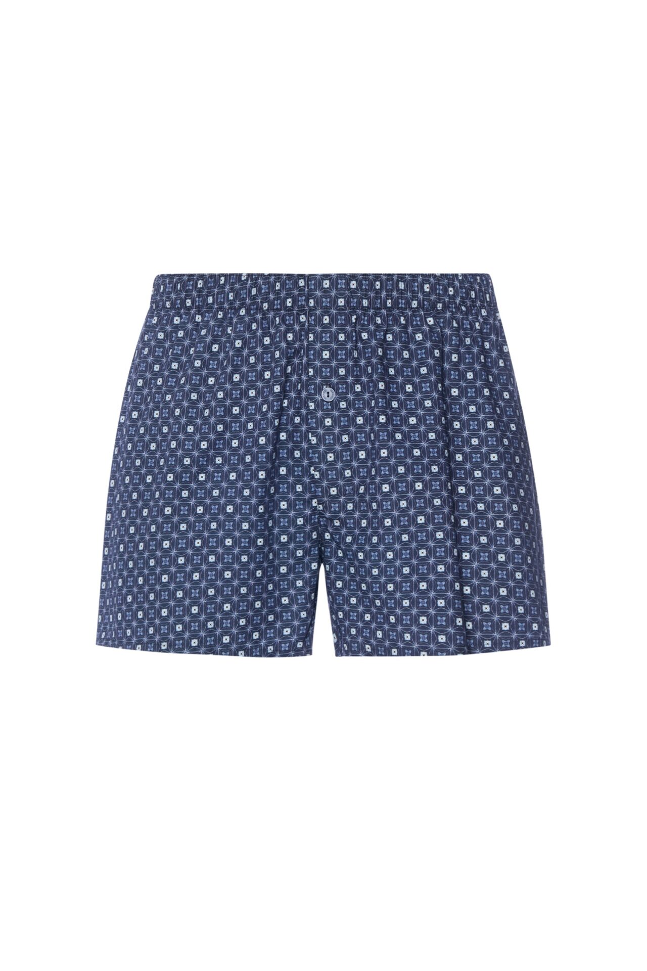 Bokserki męskie Hanro z kolekcji Fancy Woven, wykonane z tkanej bawełny w modne wzory. Rozporek zapinany na guzik. Kryty elastyczny pas zapewnia indywidualne dopasowanie do ciała. Idealne na dzień i noc.