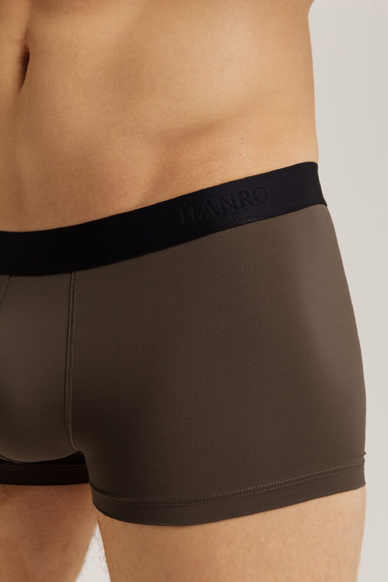 Bokserki męskie Hanro z kolekcji Micro Touch o nowoczesnym sportowym kroju. Ultra miękkie i elastyczne, doskonale dopasowują się do ciała, bezszwowy tył. Elastyczny pas z logo HANRO.